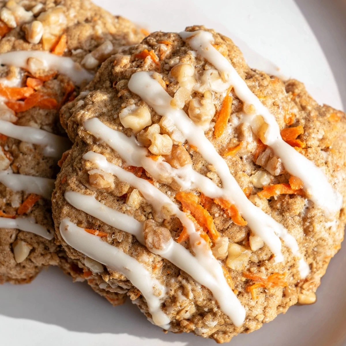 These soft, chewy cookies capture everything you love about carrot cake in a handheld format. The magic starts with brown butter, cooked until nutty and golden, which creates a rich depth of flavor throughout the dough. Grated carrots add natural sweetness and moisture, while rolled oats provide that perfect chewy texture. Warming spices like cinnamon, nutmeg, and ginger fill your kitchen with incredible aromas as they bake. Chopped walnuts bring satisfying crunch, though pecans work beautifully too. The optional cream cheese glaze adds a tangy finish that echoes traditional carrot cake frosting. Chill the dough for 30 minutes before baking for extra chewiness, or bake immediately if you're pressed for time. These portable treats stay fresh for days, making them perfect for sharing or keeping all to yourself.