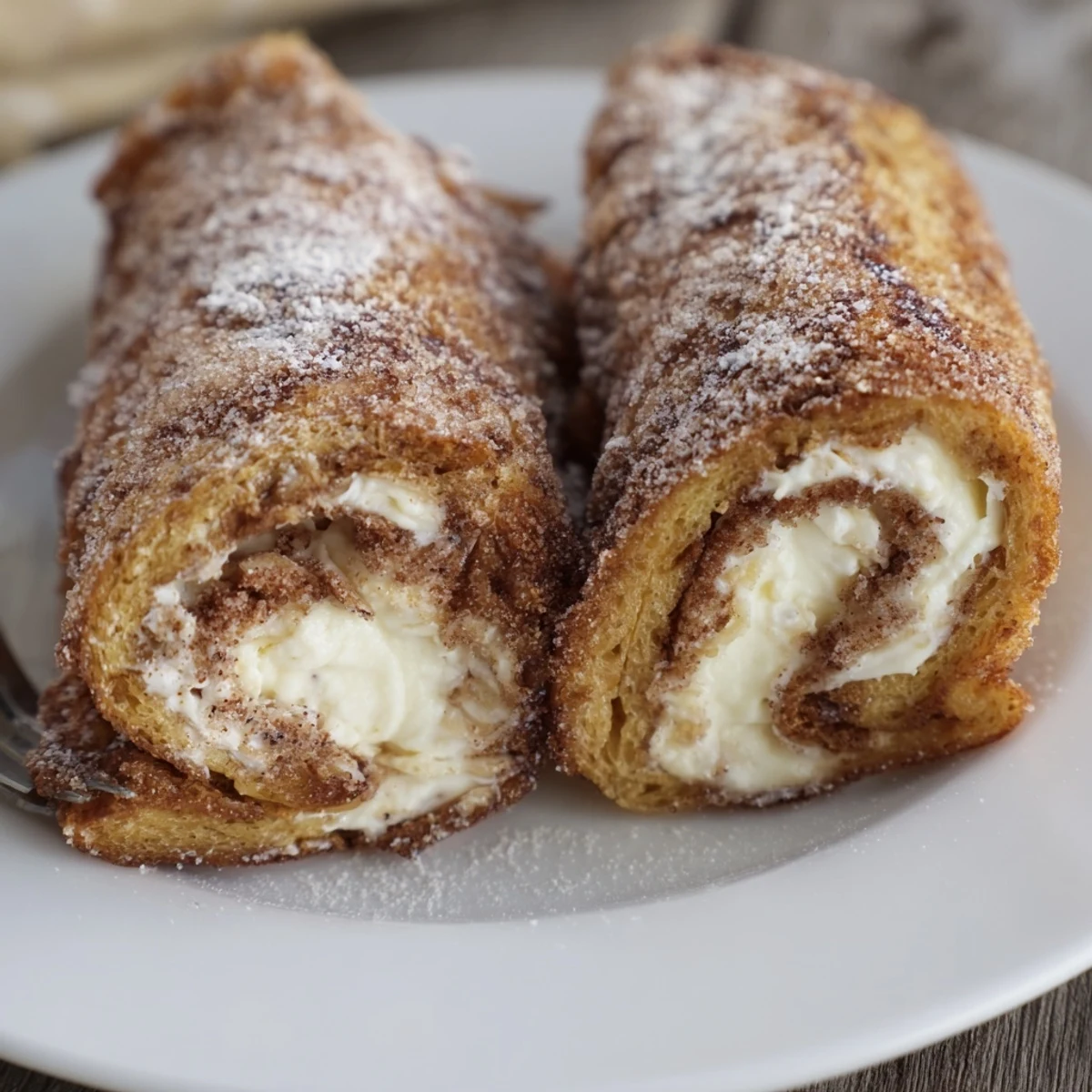 These handheld cinnamon roll French toast roll ups start with flattened white bread spread with a sweet cream cheese filling, rolled tightly, dipped in an egg-milk mixture, then pan-fried in butter until golden. Finish by coating in cinnamon sugar and serve warm with maple syrup or a dusting of powdered sugar. Variations include Nutella or fruit preserves and reheating in a toaster oven for leftovers.